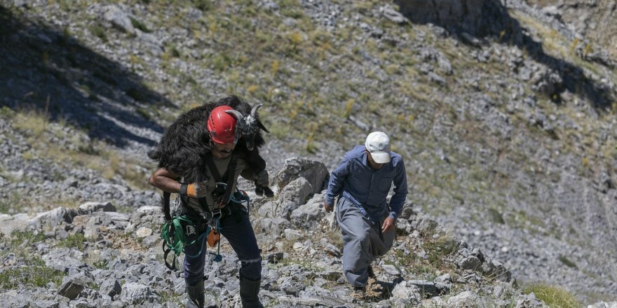3 gündür açlık ve susuzluktan yorgun düşen ve yürümekte zorlanan keçiyi itfaiye ekipleri, sırtlarında taşıyarak sahibine teslim etti.