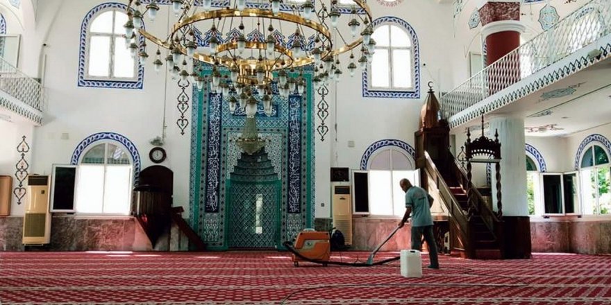 Mersin'in merkez Akdeniz ilçesi sınırlarında bulunan camiler temizlenip halıları yıkanıyor, bitmek üzere olan korona virüs salgınına rağmen ilaçlama devam ediyor.