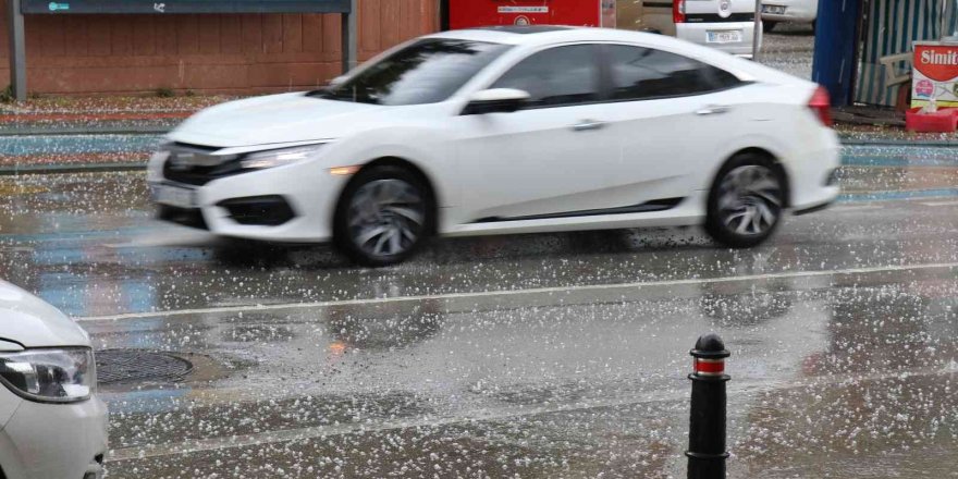Alanya'da öğle saatlerinde başlayan yağmur, kısa sürede yerini doluya bıraktı.