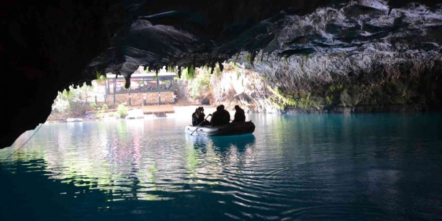 Antalya'nın İbradı ilçesi Ürünlü Mahallesi'nde bulunan Altınbeşik Mağarası yerli ve yabancı ziyaretçilerin akınına uğruyor. Bu kışın ağır geçmesi ile olabilecek tehlikelere karşı zaman zaman kapatılan mağarayı 5 ay içerisinde 40 bin kişi ziyaret etti. Günde ortalama 300 kişinin ağırlandığı ve gezi botları ile mağaranın güzelliklerini keşfe çıkan yerli ve yabancı ziyaretçiler, Antalya'nın bu cennet köşesine hayran kaldı.