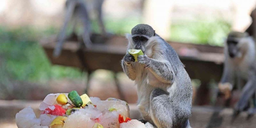 Türkiye'yi etkisi altına alan bunaltıcı sıcak hava hayvanları da zor durumda bırakıyor. Doğal Yaşam Parkı'ndaki görevliler sıcaktan bunalan hayvanları özel hazırlanmış buz kalıpları içinde meyve ve sebze kokteylleri ile besliyor. Her hayvanın beslenme alışkanlıklarına göre farklı meyvelerin konulduğu buz kalıplarındaki meyve kokteylleri, özellikle maymun türleri için lezzetli bir serinleme yaşatıyor. Doğal Yaşam Parkı'nda sıcaklara karşı ayrıca hayvanların kafeslere konulan fıskiye sistemi, havuzlar, koyu gölgelik alanlar aracılığıyla da serinlemeleri sağlanıyor.
