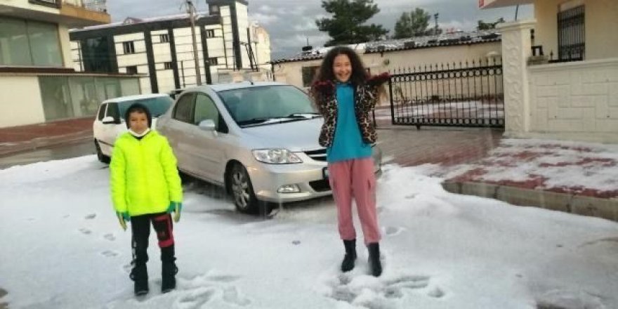 Antalya'nın Kepez ilçesi Varsak bölgesi, kısa süreli etkili olan dolu ile beyaza büründü.