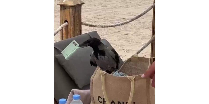 Belek turizm merkezinde yaşanan olayda turistlerin bulunduğu masaya gelen karga, bir kadının çantasındaki 100 euroyu gagasıyla aldı. Daha sonra kaçmak üzereyken, para sahibi son anda karganın ağzından parayı almayı başardı. O anları cep telefonu ile kaydeden otel müşterileri, ilk anda karganın yaptığı davranış karşısında şaşkınlık yaşasalar da olayı gülümseyerek karşıladılar.