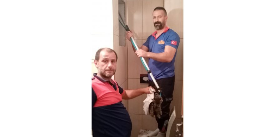 Sağlık durumunun iyi olduğu öğrenilen yavru kediye ekipler tarafından su ve yiyecek verildi.