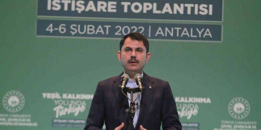 Çevre Şehircilik ve İklim Değişikliği Bakanı Murat Kurum, Antalya'nın Belek Turizm Merkezi'ndeki bir otelde Çevre, Şehircilik ve İklim Değişikliği Bakanlığı İstişare Toplantısı kapsamında "Yeşil Kalkınma Yolunda Türkiye" temasıyla düzenlenen toplantıya katıldı. Kurum, toplantının birincisini "2023'e Doğru, Türkiye'de Çevre ve Şehirciliğin Geleceği" temasıyla 2019 yılında gerçekleştirdiklerini hatırlatarak, bu yıl ise toplantıyı merkez teşkilatlar ile ilgili ve bağlı kuruluşların sunumları etrafında "Yeşil Kalkınma Yolunda Türkiye" temasıyla gerçekleştirdiklerinin altını çizdi.