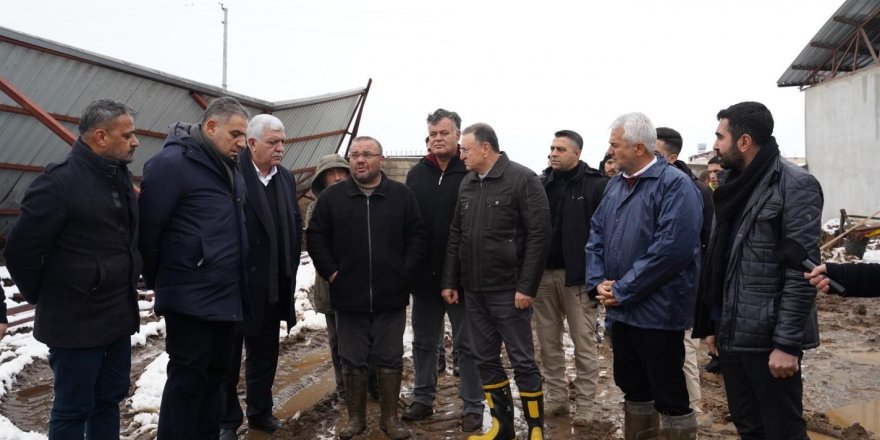 Başkan Savaş, olumsuz hava koşullarından en çok etkilenen ilçelerinden biri olan Hassa'da incelemelerde bulundu.