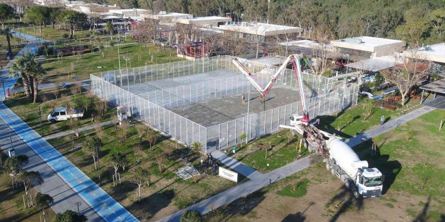 Antalya Büyükşehir Belediyesi, Konyaaltı Sahili Beach Park içinde bulunan tenis ve basketbol sahalarının deforme olan zeminlerini yeniliyor.