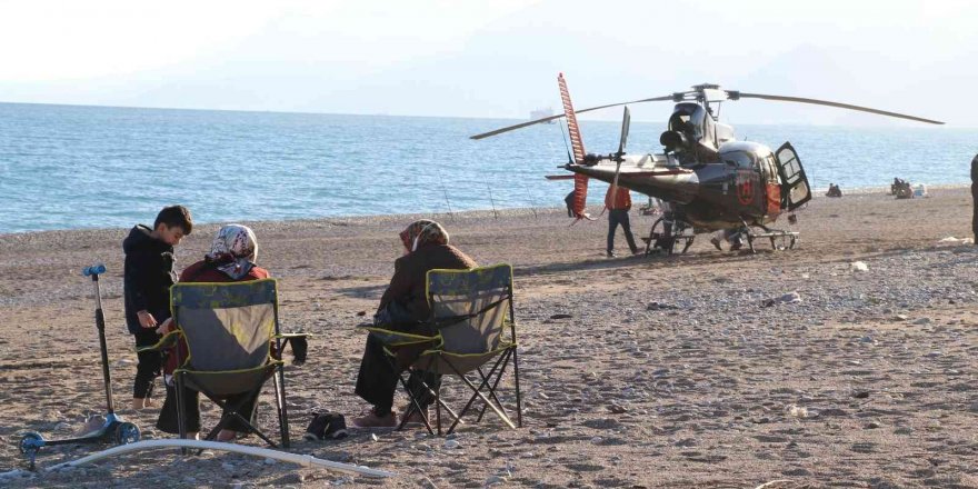 Antalya'da, bisiklet turunu görüntüleyen helikopter, motor arızası sebebiyle Konyaaltı Sahili'ne acil iniş yaptı.