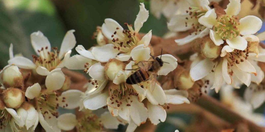Türkiye'de yeni dünya (Malta eriği) meyvesinin en fazla üretildiği iller arasında yer alan Mersin'de ağaçların çiçek açmasıyla görsel bir güzellik ortaya çıkarken, arılar için de nektar ve polen toplama alanı oldu.