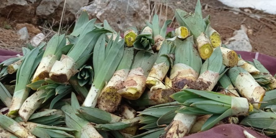 Kahramanmaraş'ta ilkbahar mevsiminde dağlarda yetişen ve yöresel yemeklerde kullanılan çiriş otu, sofraları süslemeye başladı.