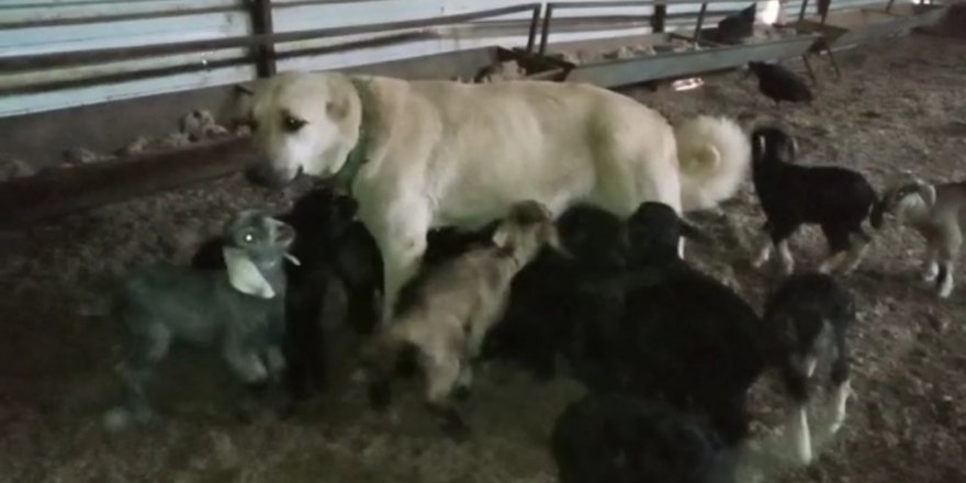 Çoban köpeği yavru keçilere süt annelik yapıyor