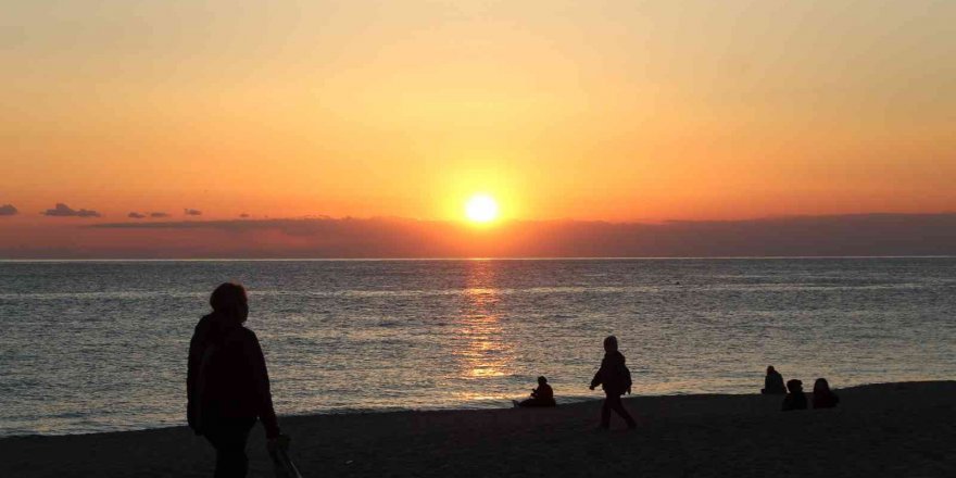 Alanya ilçesinde bulunan Damlataş Kleopatra Plajı eşsiz gün batımının seyrine doyum olmuyor. Güneşin batmasıyla kızıllığın hakim olduğu gökyüzüne dalga sesleri eşlik ederken, onlarca insan bu eşsiz manzarayı izlemek için kumsalda bir araya geldi. Kartpostallık görüntülerin oluştuğu plajda kimileri arkadaşları ile sohbet ederek, kimileri ise kumsal boyu yürüyüş yaparak manzarayı izledi.