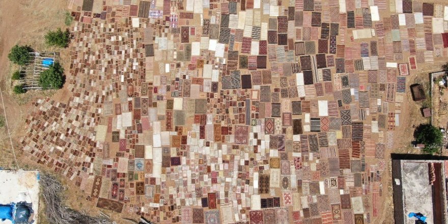 Antalya'nın Döşemealtı ilçesinde el dokuması binlerce halı ve kilim, mikroplardan arındırılmak ve renklerinin pastele dönüştürülmesi için buğday tarlalarına serilmeye başlandı. Onlarca dönüm tarla içerisinde adeta renk cümbüşü oluşturan halılar, 50 TL'den 1 milyon TL'ye kadar alıcı buluyor.