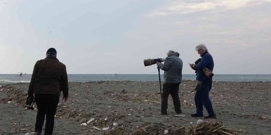 Hatay'ın Samandağ ilçesinde ilk kez görülen Çatal Kuyruklu Martıyı fotoğraflamak için vatandaşlar bir biriyle yarıştı.