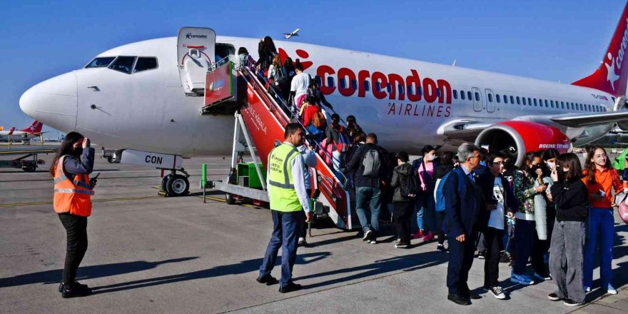 Antalya'da hayatlarında hiç uçak yolculuğu yapmayan 127 çocuk, Corendon Airlines'ın CAI 1920 sefer numaralı uçağıyla Çanakkale Gezi'sine katıldı.