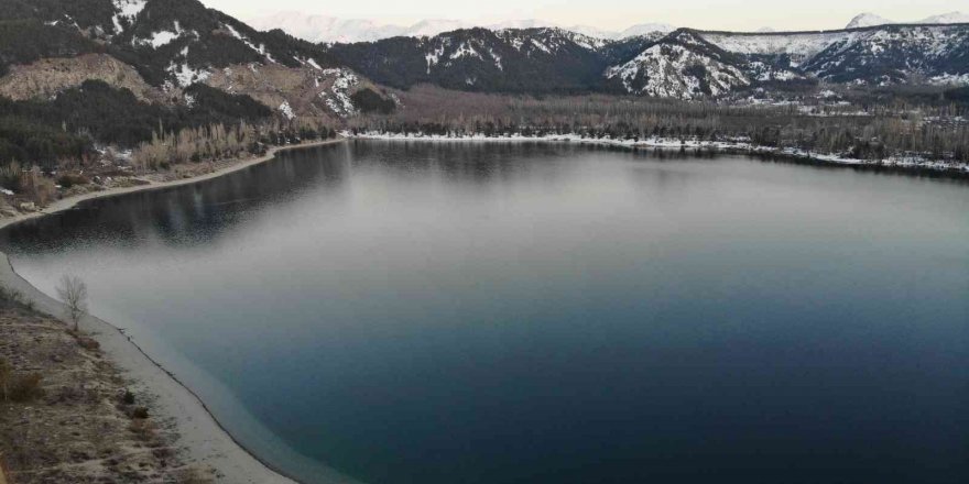 Gölcük Tabiat Parkı'nda güneşli havanın ortaya çıkardığı eşsiz manzara ise havadan görüntülendi.