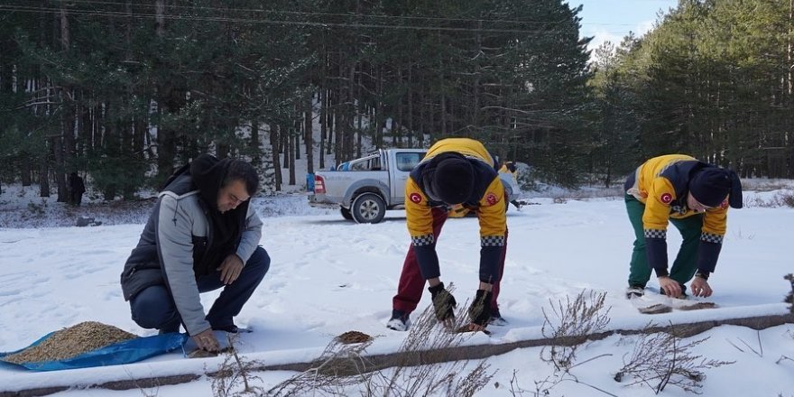 Isparta’da, kar altında doğada yaşayan hayvanlar unutulmadı