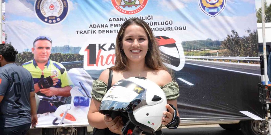 Adana'da "Bir kask bir hayat" projesi çerçevesinde düzenlenen etkinliğe katılan motosiklet sürücüsü Elif Yıldız, erkek sürücülerden saygı istedi.