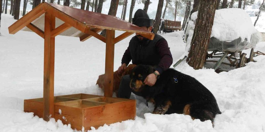 Kahramanmaraş'ta kış günlerinde sokak hayvanları için imal edilen onlarca beslenme ünitesi, kedi evi ve köpek kulübesi şehrin muhtelif yerlerine konumlandırıldı.