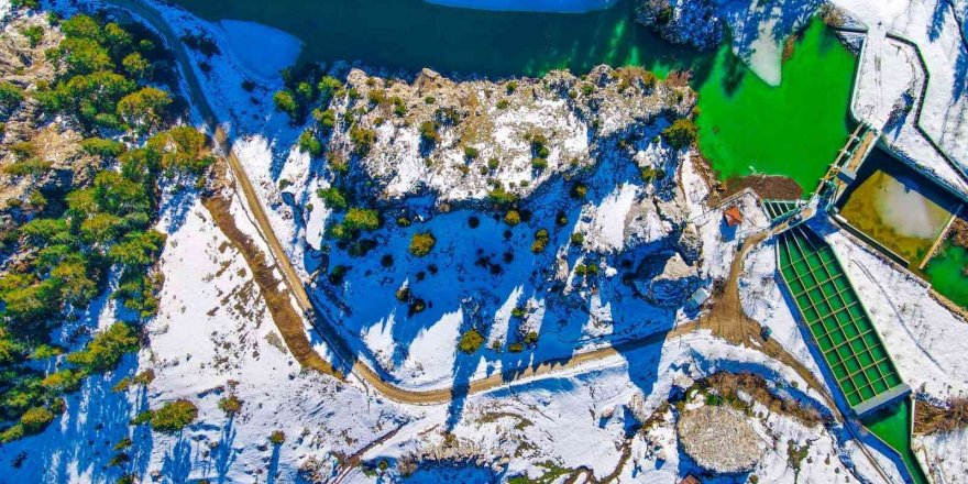 Kahramanmaraş'ta kar yağışı sonrası Kargaçayırı Gölü'nde kartpostallık manzaralar oluştu.