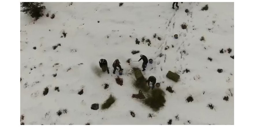 Karlı kaplı dağlara yabani hayvanlar için yem bırakıldı