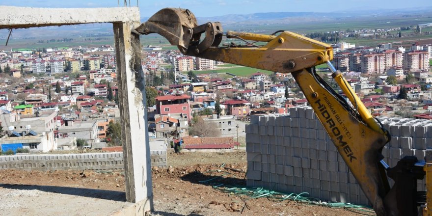 Hatay'ın Kırıkhan ilçesinde kaçak yapılar yıkıldı.