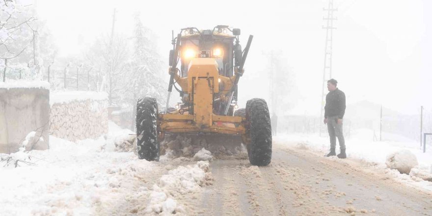 Konyaaltı'nın yüksek yerlerinde yılın ilk karı yağarken, kar yağışı sonrasında kapanan yollar Konyaaaltı Belediyesi ekipleri tarafından açıldı.