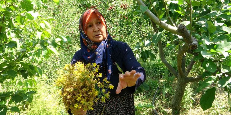 Sarı Kantaron çiçeğinin, yağının, tohumunun ve bitkisinden çay elde ettiklerini aktaran Atike Ersin Solmuşgül, "Bizim için bu yarım doktor. Çiçek dönemlerinde hasadını yapıyoruz. Cam şişelerde çiçekleri zeytinyağı ile birlikte 1 ay boyunca tarlada güneşte bekletiyoruz. Kırmızı rengi alana kadar iyice güneşte bekliyor. Mide ağrısı, eklem ağrıları, yaralarda, kesiklerde enfeksiyonda her derde deva bizim için. Yağını ya da çayını mide ağrısında kullanıyoruz. Bizim için köyde bunun adı yarım doktor. Her derde deva. Köyümüzde dağ eteklerinde doğa da kendinden çıkar her yaz çiçek dönemi toplarız. Bizim için şifa deposu" diye konuştu.