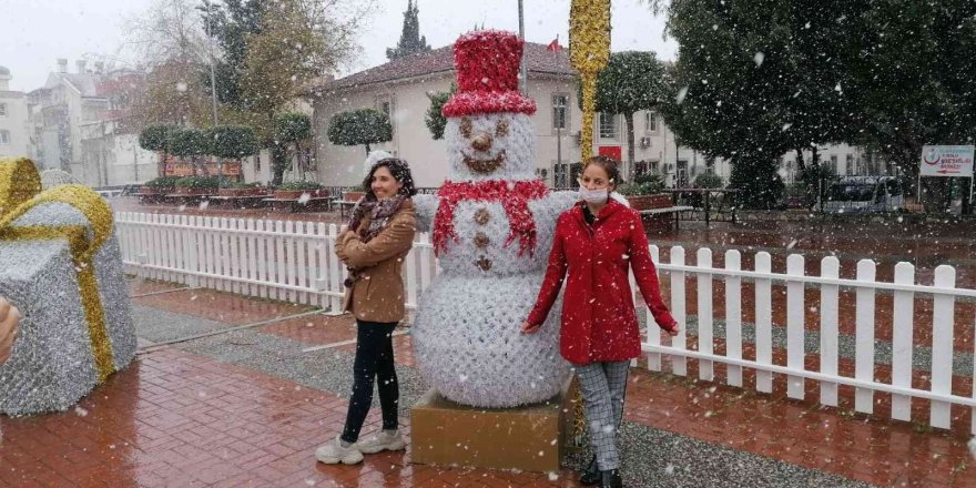 Manavgat’ta 14 yıl aradan sonra kar sevinci
