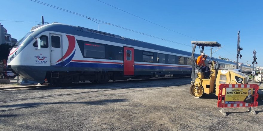 Geçici olarak trafiğe kapatılan hemzemin geçitte çalışmalar kısa sürede tamamlanarak, sürücülerin yanı sıra yayaların ve özel gereksinimli bireylerin de rahatlıkla geçebilecekleri zemin oluşturuldu.