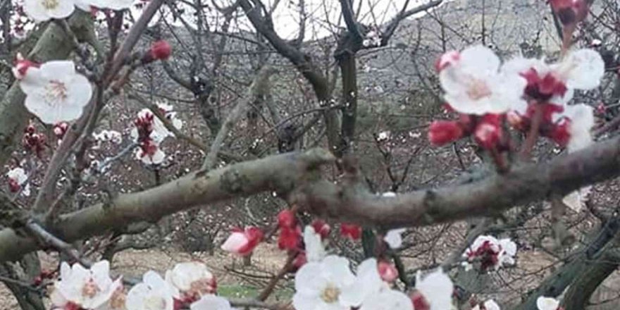 Havaların ılıman geçmesi sebebiyle sıcaklığın 15 derecenin üzerine çıktığı ilçede, kayısı ağaçları çiçek açınca seyirlik görüntü oluştu.