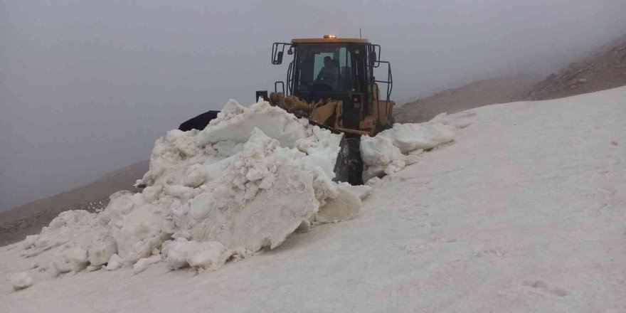 Yaz aylarının aşırı sıcaklarından etkilenen hayvanlarını serin noktalara götürmek için yolculuğa başlayan Yörüklerin, sıkıntı yaşamaması için Büyükşehir Belediyesi Muhtarlık İşleri Dairesi ile Yol Yapım Bakım ve Onarım Dairesi ekipleri, Çamlıyayla'nın 3000 metreye yakın noktalarında kar küreme ve yol temizlik çalışması gerçekleştiriyor.