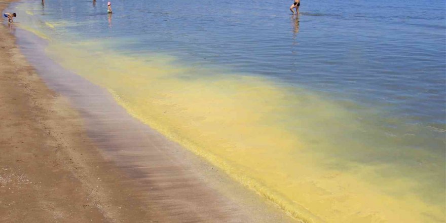 Mersin'de Kızkalesi başta olmak üzere birçok noktada denize dökülen polen tozları sahili sarıya çevirdi.