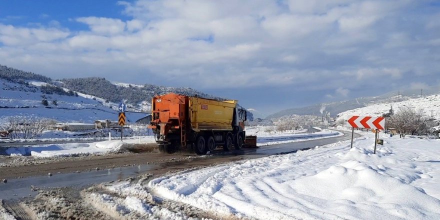 Osmaniye'nin yüksek kesimlerinde etkili olan kar yağışı sonrası yollarda biriken karların temizleme çalışmaları devam ediyor.