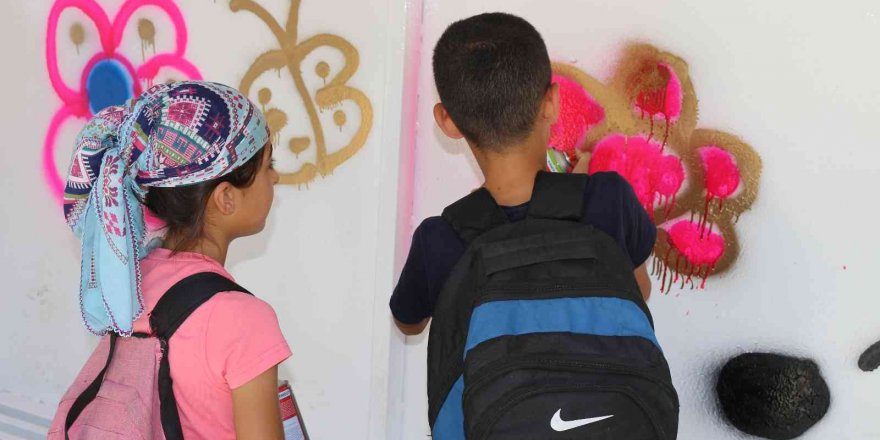 Antalya'nın Serik ilçesinde çocuklar, belediyeden talep ettikleri ve uygun alana yerleştirilen durağı gönüllerince boyadı.
