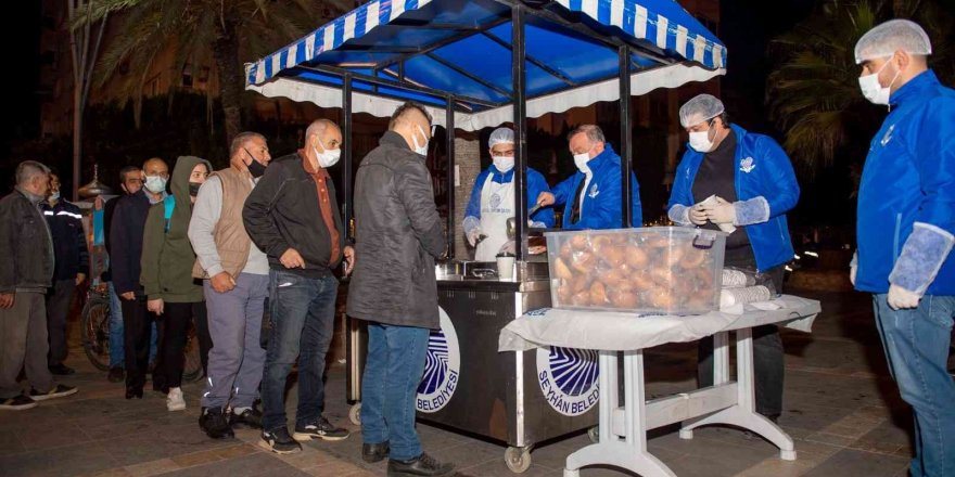 Seyhan Belediyesi, gün ağarmadan işine ve okuluna giden vatandaşlara, belediye çalışanlarına sıcak çorba ikram ediyor.