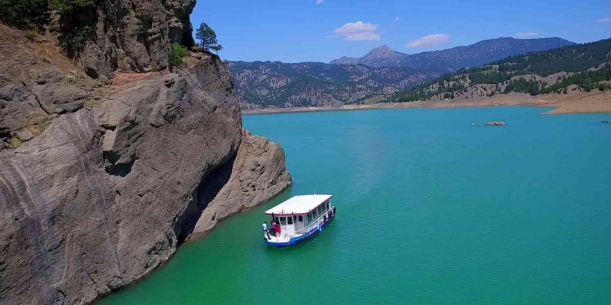 Kahramanmaraş'ta, Menzelet Barajında gerçekleşen tekne turları ile vatandaşlar, baraj içerisinde yer alan Ali Kayası'nın eşsiz manzarasını görme imkanı buluyor.