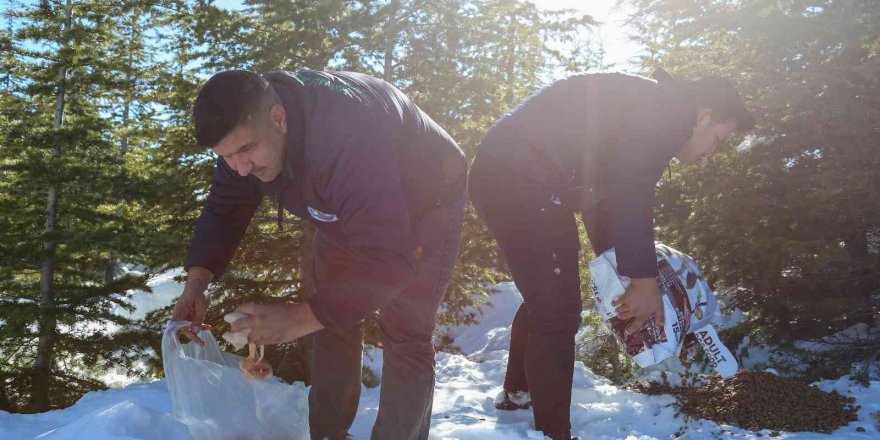 Mersin'in Erdemli ilçe Belediyesi, kış aylarının zorlu geçtiği Toros dağlarında, doğal hayatı destekleme çalışmaları kapsamında yabani hayvanların aç kalmaması için doğaya yem bırakıyor.