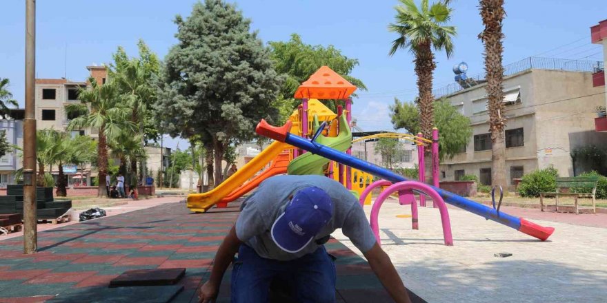 Toroslar’da park ve yeşil alanlara yaz bakımı