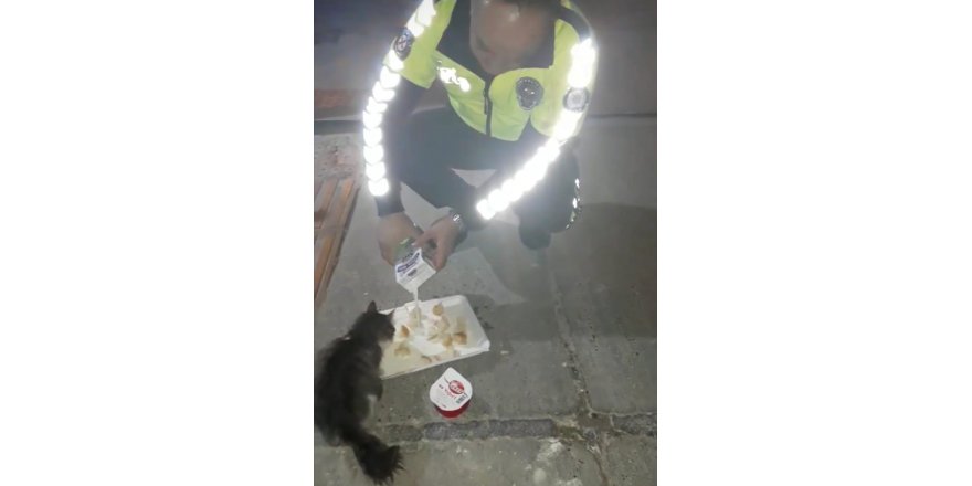 Trafik polisi sahipsiz hayvanları kendi elleriyle besliyor