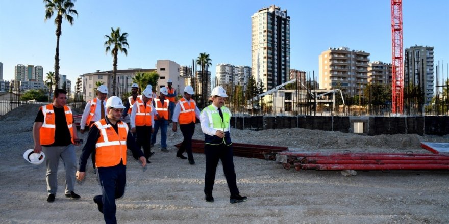 Mersin Valisi Ali Hamza Pehlivan, Yenişehir ilçesinde yapımı devam eden Mersin İl Müftülüğü Yerleşkesinde devam eden inşaat çalışmalarını yerinde...