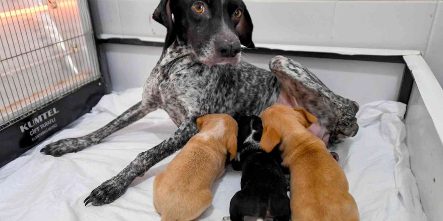 Mersin'in Erdemli ilçesinde yeni doğan yavrularıyla birlikte 2 gün boyunca yağmur altında kalan anne köpek ve yavruları, Mersin Büyükşehir Belediyesince koruma altına alındı.