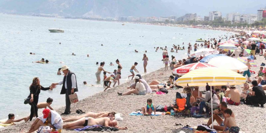 Turizm kenti Antalya'da hafta sonunu fırsat bilen yerli ve yabancı vatandaşlar Konyaaltı sahiline koştu. Hava sıcaklığının 31 dereceye kadar çıktığı kentte ünlü sahil adeta hınca hınç doldu. Sahile gelen birçok kişi denize girerek Akdeniz'in serin suyunda serinledi. Denizin ve kumun en çok tadını ise yine çocuklar çıkardı. Bazı tatilciler de sıcak kumsal üzerinde güneşlenmeyi tercih etti.