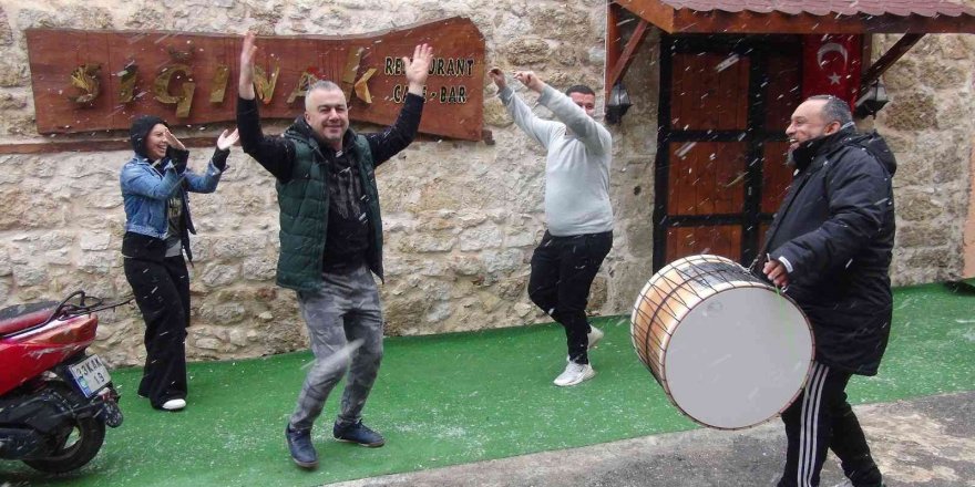 Yıllar sonra kar yağdı, vatandaş davul eşliğinde göbek attı