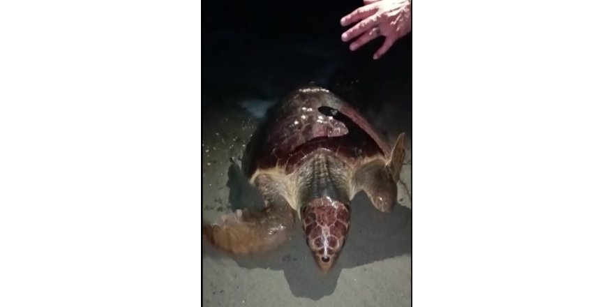 Dünyada nesli koruma altındaki caretta carettalardan biri yumurta bırakmak için geldiği sahilde vatandaşların flaş ve ışıklı ilgisi karşısında karaya...