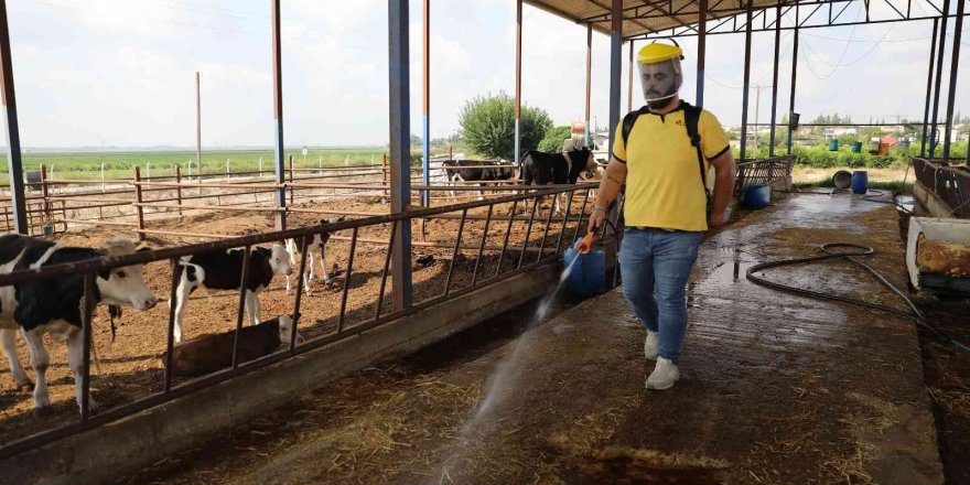 Yüreğir Belediyesi Kırsal Hizmetler Müdürlüğü ekipleri, hizmet sahasındaki köylerde tarımsal yapının zenginliğini arttırmak ve hayvan yetiştiriciliği yapan üreticilerin karşılaşmış olduğu hayvan hastalıklardan kaynaklı kayıpları en aza indirmek hedefiyle ahır ve ağılları sinek, haşere, hamam böceği, mavi dil, kene ve kemirgene karşı ilaçlıyor.