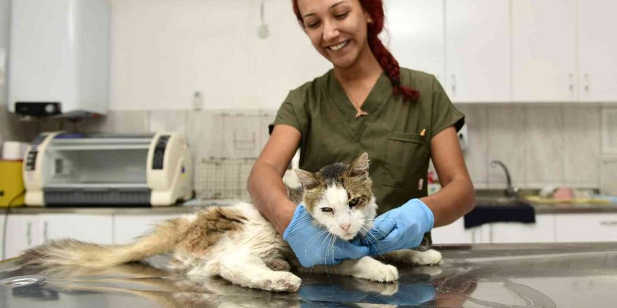 Muratpaşa Belediyesi Sokak Hayvanları Geçici Bakımevi ve Rehabilitasyon Merkezi'nde hayata tutunan sokak hayvanlarından biri de çalışanların ilgiyle baktığı sokak kedisi oldu.